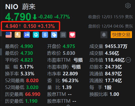 美股盘前交易时段,蔚来(NIO.US)股价呈现积极走势,涨幅超过3%。这一市场表现与近期公司取得的重大技术突破密切相关。