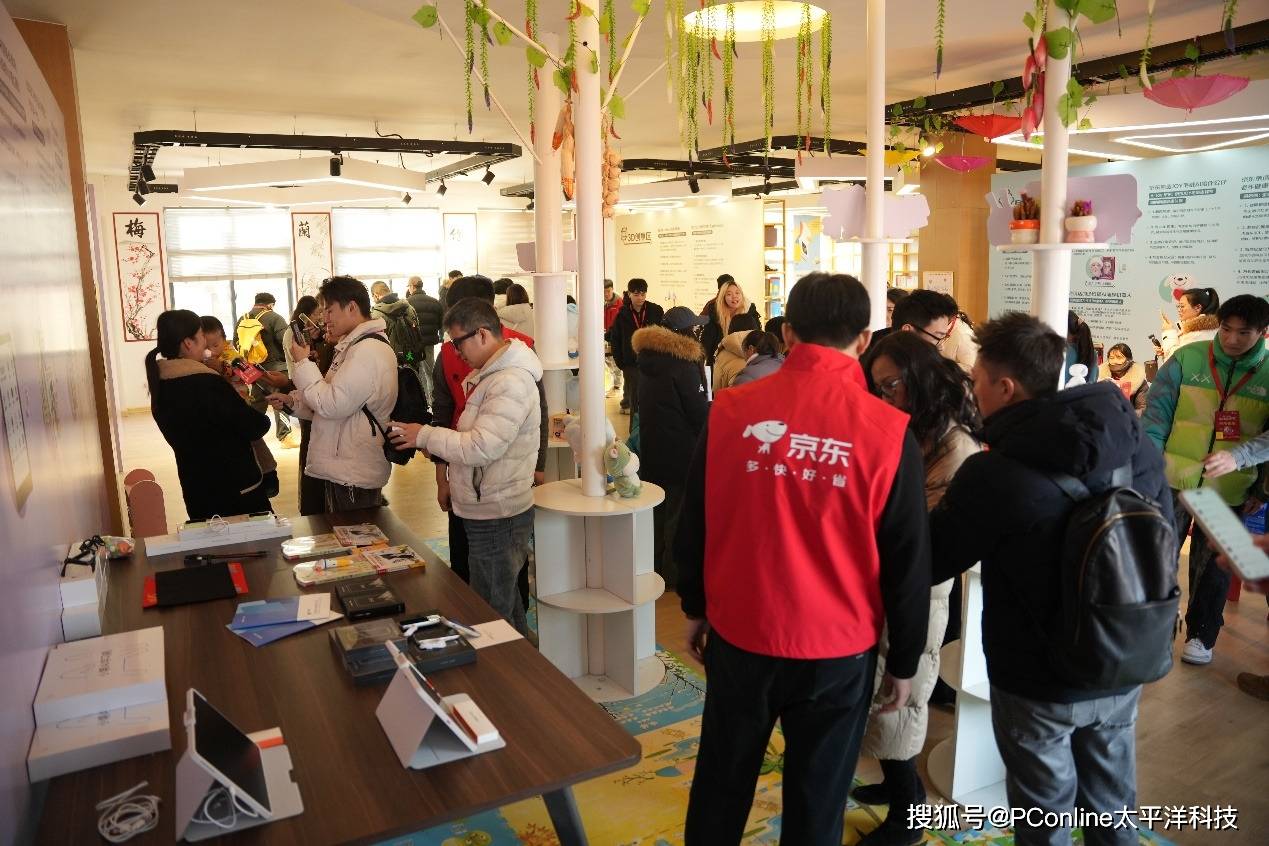 AI互动区则展现出科技的人文温度。元萝卜下棋机器人通过拟人化交互设计,将围棋、象棋等传统智力游戏转化为智能陪练系统,在每步落子间锻炼学生的逻辑推理能力。早教区的京东京造AI台灯与智能闹钟,通过光线调节、时间管理等细节设计,为低龄儿童营造健康的学习环境。这些充满巧思的科技应用,让冰冷的技术设备成为温暖的学习伙伴。