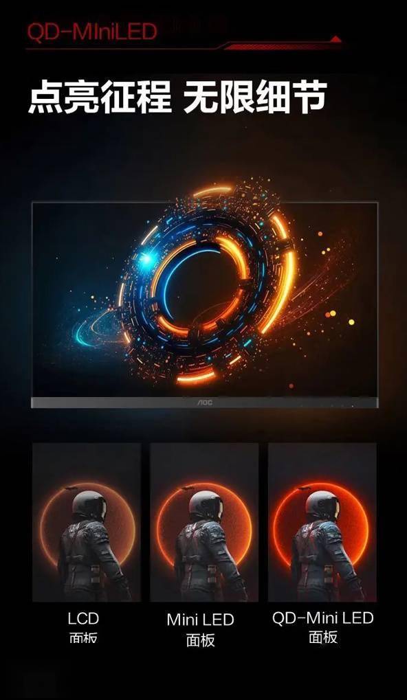 这款显示器专为游戏爱好者设计,同时也能够满足创作和观影等多种需求。它采用了27英寸的QD Mini LED面板,拥有4608颗背光灯珠和1152个分区,提供了四种控光模式,对比度高达5000:1。分辨率达到了2K级别,即2560*1440像素,刷新率则高达180Hz,响应时间仅为1ms(GTG),为玩家带来流畅的游戏体验。