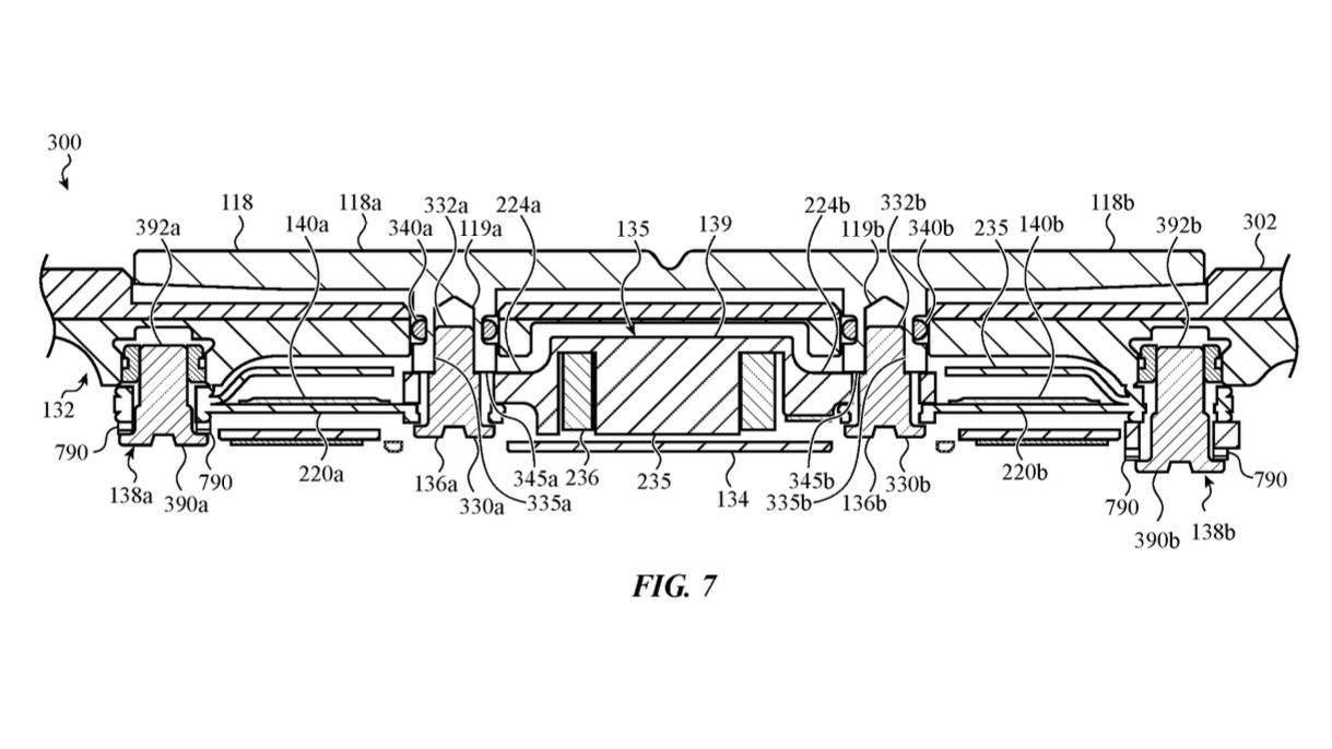 尽管如此,苹果并未完全放弃这一创新技术。2023年9月,苹果提交了关于“Bongo项目”的专利申请,并于2025年4月正式获批。专利描述显示,触觉按钮设计采用了柔性结构和应变计来感知压力变化,一旦检测到按压动作,电信号将被传输至“Bongo Haptic Engine”,通过电磁阻尼电机产生振动反馈,其工作原理与常规的Taptic Engine相似。
