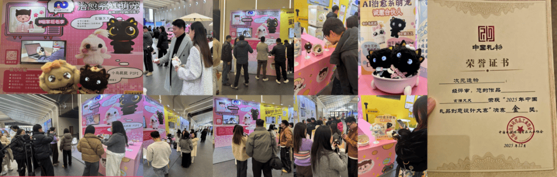 在商业落地层面,次元造物已通过“玄猫又又”“小鸟屁屁”两款产品验证模式可行性。这两款产品斩获“2025中国礼物创意设计大赛金奖”,证明“IP+AI+机器人”组合在礼品市场的潜力。企业下一步计划进军文旅与情感消费场景:在文旅领域,与景区联名开发“会说话、懂玩梗”的智能纪念品;在情感消费领域,推出从桌面手办到随身挂件的多元形态产品,抢占Z世代用户的日常陪伴场景。