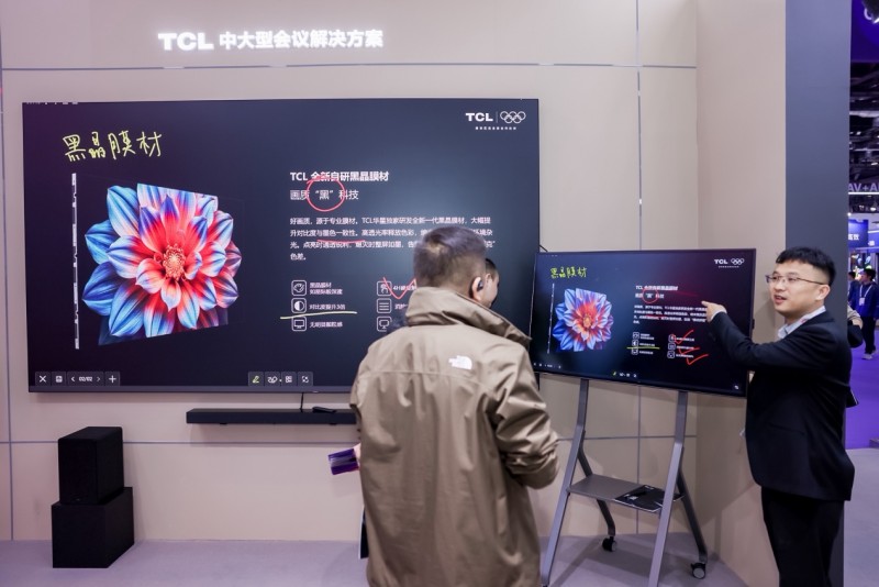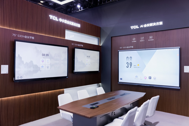 在智慧办公展区,TCL构建了一个从中小型会议室到大型报告厅的全场景演示环境,会议产品尺寸覆盖50至136英寸,以满足各类企业空间快速部署与高效协同的需求。